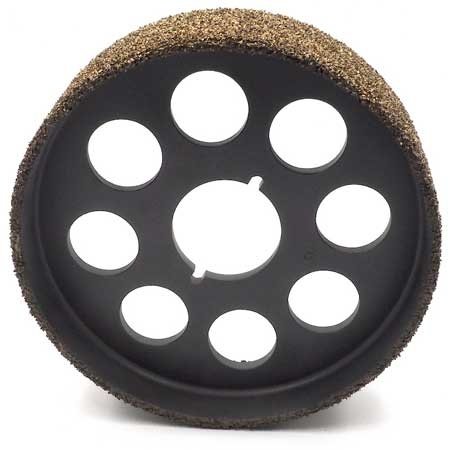 Unit Wheels are contour wheels with a flat contact / working surface with larger diameters and widths. They are very popular for use on tyre sidewalls and the texturizing of conveyor belts or splice ends of pre-cured treads. Another major application is their installation in manual buffing arms to do the fine work on retread tyre-shoulders.