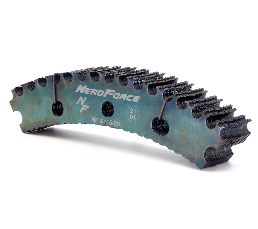 NeroForce buffing blades are manufactured and hardened using an innovative, new process. The blanks, which are punched from high-quality High Carbon Steel, are hardened in a special device in which each individual blade is fixed. This hardening process differs significantly from the conventional roughing blade manufacturing process used by competitors. The difference can be seen in the application: a much longer service life and more effective performance.